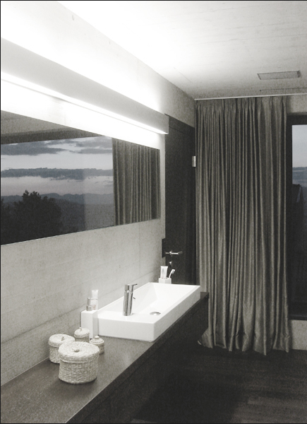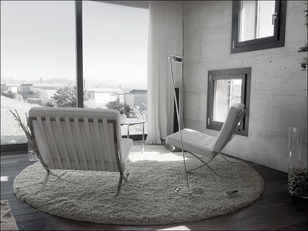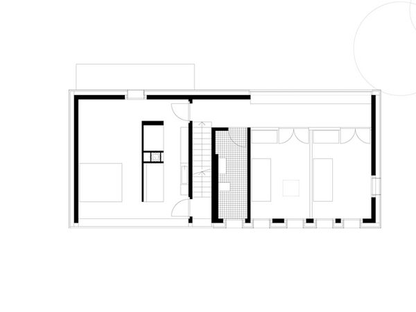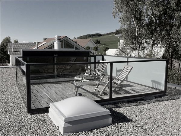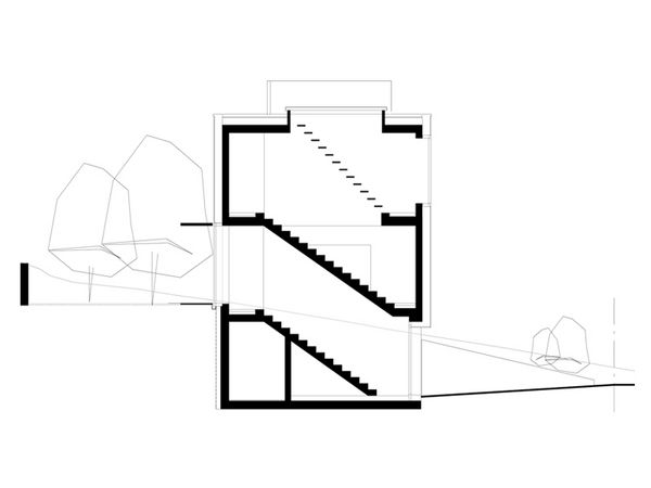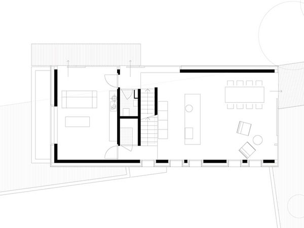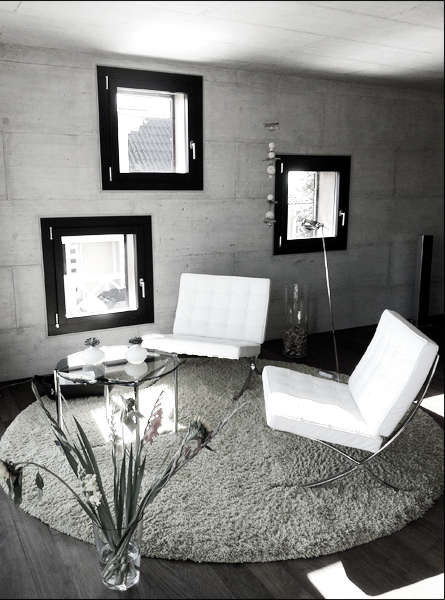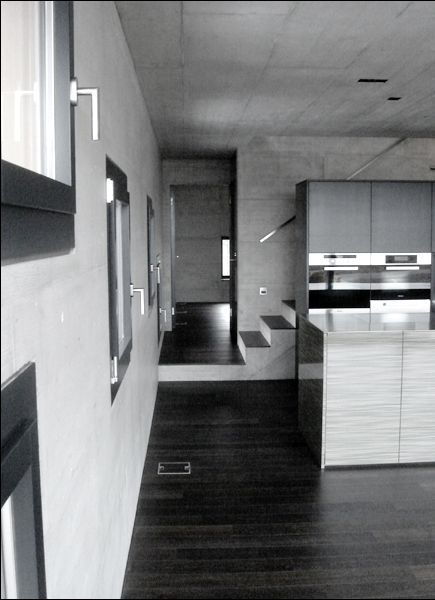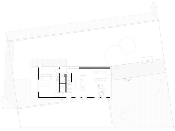 Das Teilen des Volumens durch die Erschliessung und die nutzungsorientierteen Ausrichtungen der Teilvolumen erlauben dem Bewohner die Wahrnehmung seines gesamten Grundstückes.