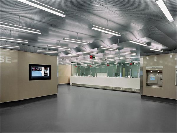 Das "Scheitern der Grossform" seitens der Unique führte zu einer Neukonzeption für die Filiale der Credit Suisse: Eine clusterartige Anhäufung von Boxen, die mit spezifischen Nutzungen gefüllt werden und ein Raumkontinuum aufspannen, das der Kundschaft eine, trotz hoher Sicherheitanforderungen offene Bank suggeriert. Eine ständig in Bewegung befindliche "Maschine"