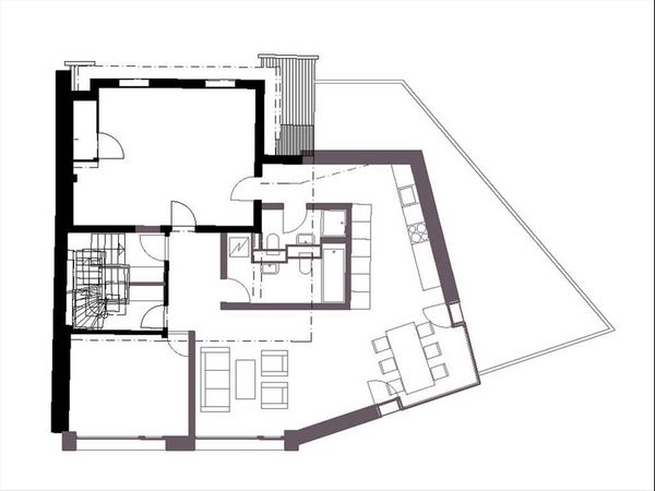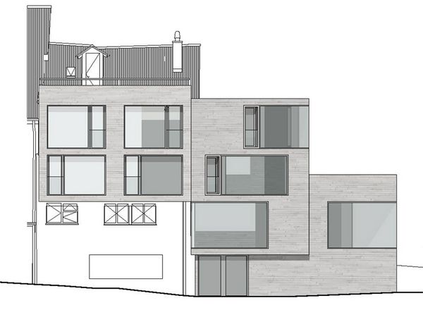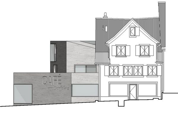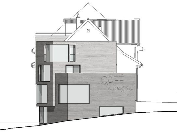 Die ursprünglich aus vier Hausteilen zusammengebaute Zeilenbebauung ist um 1730 erbaut worden, und gehört zur ältesten Bausubstanz von Thalwil. Durch die Strassenverbreiterungen der alten Landstrasse im Jahr 1940 mussten zwei der vier Hauszeilen abgebrochen werden. Das Projekt umfasst die Sanierung eines bestehenden Hausteils, sowie eine Ergänzung der beiden verlorengegangenen Hauszeilen.Der neue Anbau steht direkt am Strassenrand womit er zusammen mit dem Gebäude auf der gegenüberliegenden Strassenseite ein Engnis bildet, und so den Dorfeingang simbolisiert. Im Erdgeschoss befindet sich ein Restaurant deren Aussenbereich sich auf dem Dorfplatz befindet.In den beiden Obergeschossen werden je eine 3,5-Zimmer Wohnung mit Sicht auf die Glarner Alpen eingebaut.