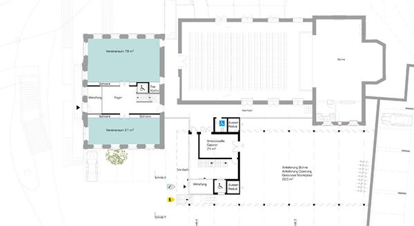 Mit möglichst wenig baulichen Eingriffen werden die Räumlichkeiten der Nachtzone, wie auch die Vereinsräumlichkeiten im bestehenden Gasthof Löwen organisiert.Der vorgeschlagene Neubau soll nebst der städtebaulichen Klärung, auch das bestehende Ensemble qualitätvoll weiterbauen, indem es die geschichtliche Eigenart, der Kombination von Stilelementen verschiedener Epochen aufnimmt und in einer darauf bezugnehmenden und abgestimmten Formensprache reagiert. Der Neubau ist als Elementbau konzipiert. Die vorfabrizierten Betonelemente der Bogenstützen, wie auch der Betondecken und deren Unterzüge sind repetitiv.