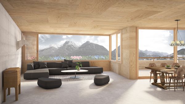Der in Massivbauweise (Sichtbeton) konzipierte Solitärbau soll eine schwere Ausstrahlung erhalten, welche Bezug nimmt zu den historischen Engadiner Bauten.