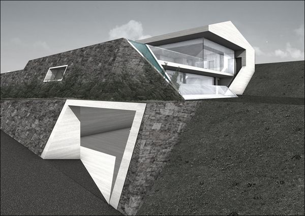 Die Erschliessung erfolgt über einen Lichthof, von welchem eine Kaskadentreppe zuerst in ein Sockelgeschoss und weiter in das sehr repräsentativ gestaltete Wohngeschoss führt.